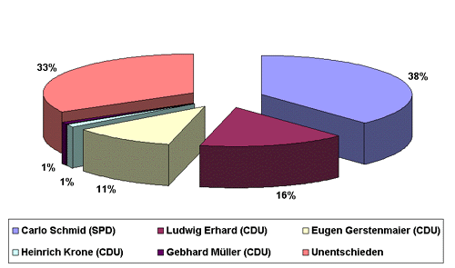 Schmid dem CDU-Kandidaten Heinrich Lübke mit 486 zu 517 Stimmen.